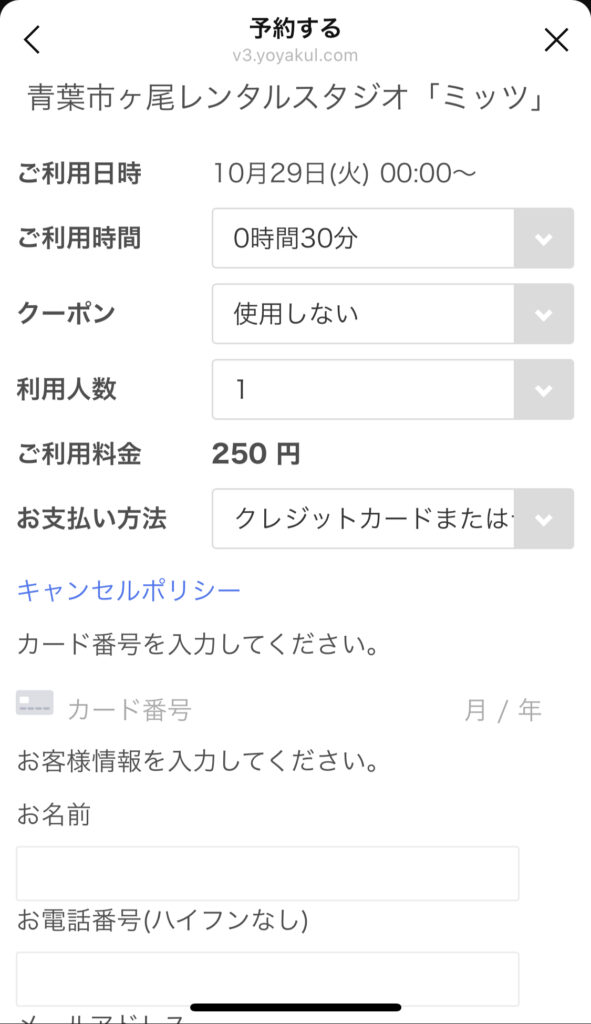 ③お名前・連絡先・クレジット情報を入力し、予約します。